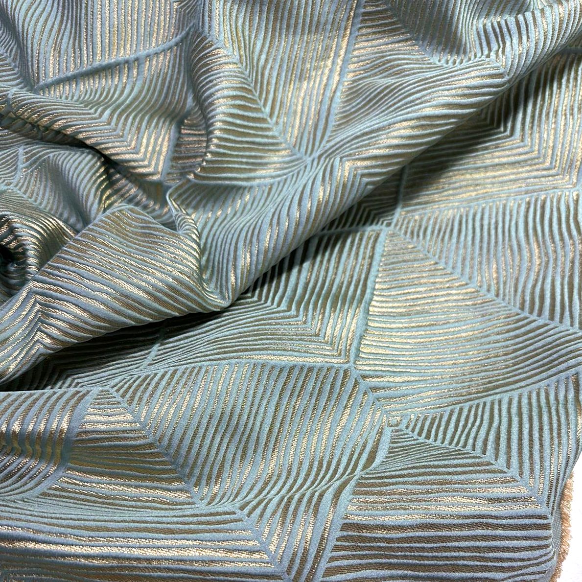 Жаккард геометрия гр.голубой\золото