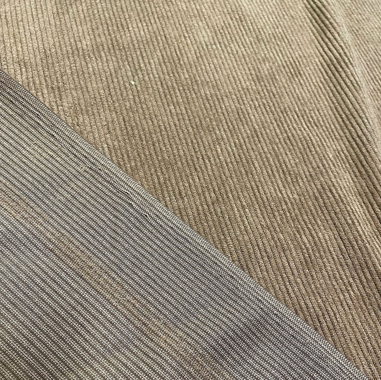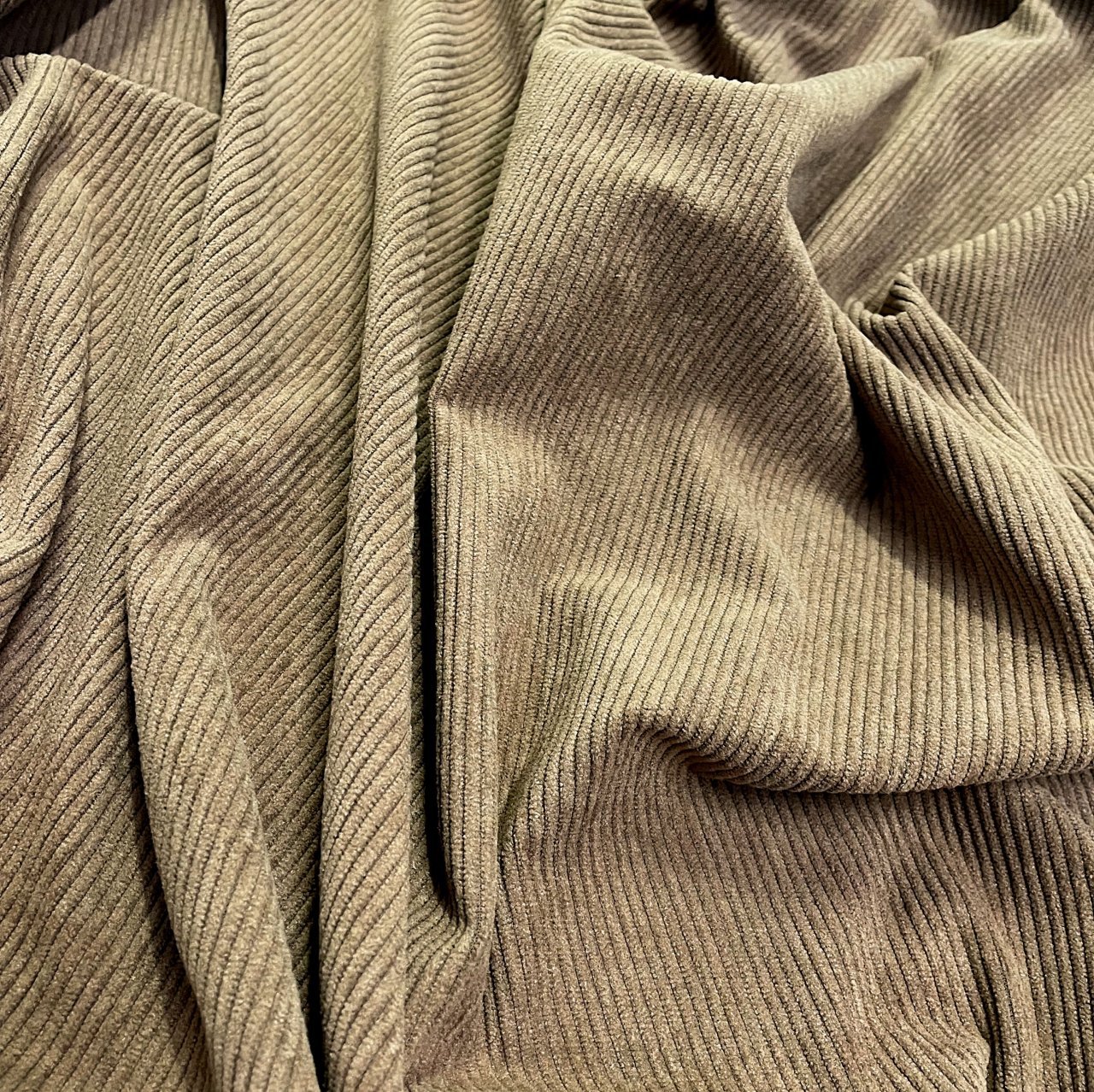 Плотный, и в то же время приятный материал с матовым блеском по лицевой стороне и нежной бархатистой поверхностью. На лицевой стороне классический ворс, создающий фактуру в полоску. Хорошая плотность ткани обеспечивает ее высокую износостойкость. Вещи из вельвета всегда актуальны, удобны в носке и не мнутся. Ткань прекрасно подходит для пошива свитшотов, платьев, юбок, а также спортивных костюмов.